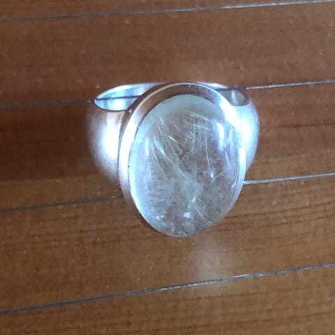 Ring med hvit sten selges kr 100,- + porto