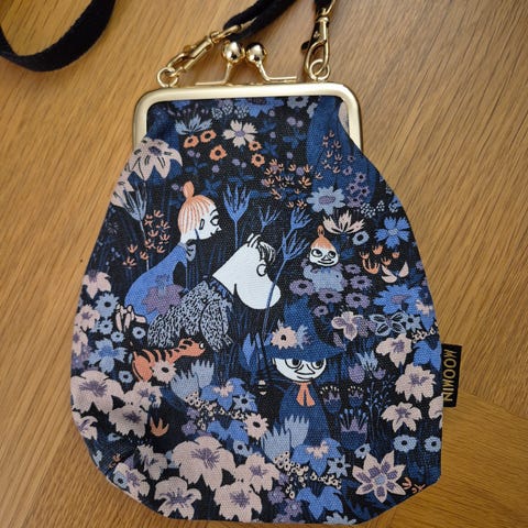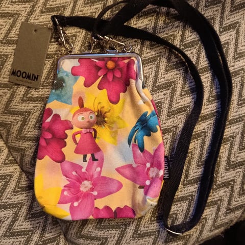 Selger moomin veske og lommebok, vesken er brukt 1 gang og lommeboken er aldri brukt! Skulderstroppen kan justeres til sånn du vil ha den, selges samlet!😊