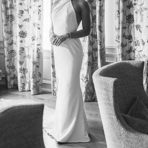 Nydelig brudekjole kjøpt på White by Green i Oslo. Kjolen er fra Nouvelle Amsale, modellen heter «Rainey» i str. 4 (tilsvarer en small). Se siste bildet for mål. Ingenting har blitt gjort med selve overdelen av kjolen, men jeg har fått kjolen lagt opp til meg + designet inn en nydelig splitt.