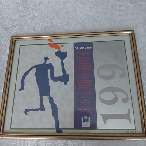 Innrammet OL-94 aksje nummer 5122 selges for kr. 200,-. Kan sendes. Da tilkommer porto med PostNord eller hentes på Gjøvik.