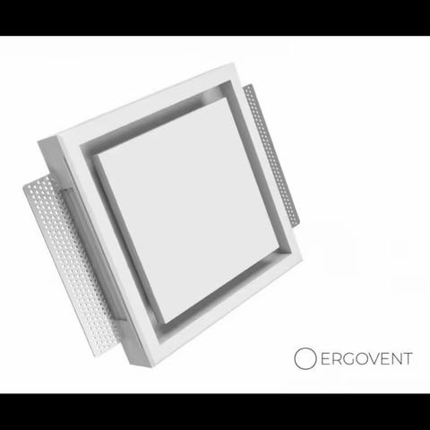 Ventilen er produsert i gips, og sparkles/pusses inn i taket for en sømløs installasjon. Ventilen males så i ønsket farge.