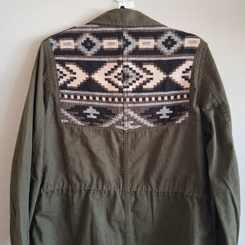 Unik bomullsjakke med broderier og legg, str. 42 (liten i størrelsen)