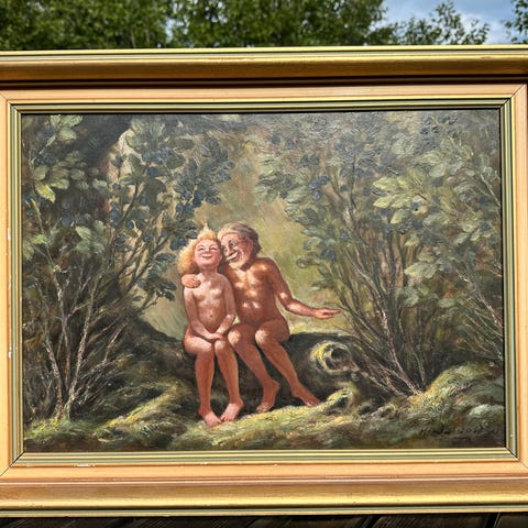 Samme motiv som dette litografiet er brukt på forsiden av Arvid Møllers bok «Svein Solem–en Askeladd i norsk malerkunst».