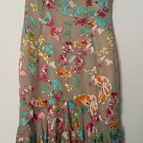 Lekker Desigualkjole i nydelige farger. Understoff i jersey, over sjifong-aktig, litt strech. Står XL, men det er spansk størrelse, mer L (passer nok 38-42) Brukt såvidt. Kostet rundt 2000 kr ny.