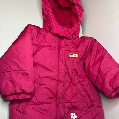 Mellomlang fortykket dunjakke for barn, som inneholder 80 % til 90 % dun, noe som gjør den varm og lett å ha på.