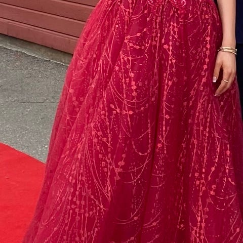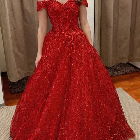 Selger en ballkjole som er blitt brukt bare en gang ifjor.