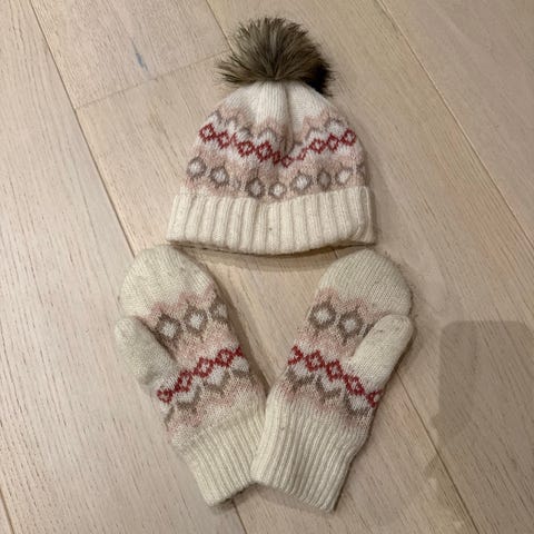1.Fin foret lue og votter med fin dumpapp motiv.