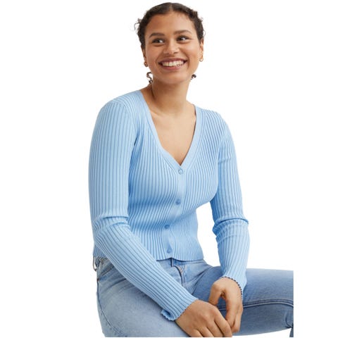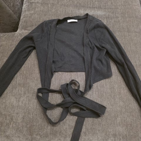 Cardigan fra H&M med drapering som gir fint fall. Ribbestrikket. Noe nuppete.