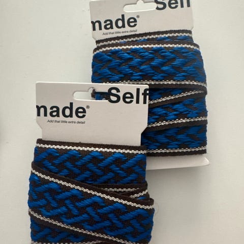 Ubrukte rosa bisebånd 4 mm. Har tre pakker à 5 meter som selges samlet. Pris hos Selfmade (stoff og stil) er kr 59 pr 5 meter.