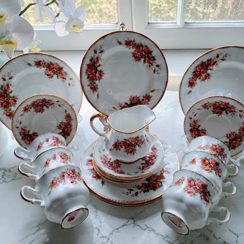 Deler fra kaffe serviset Paragon i mønsteret Victoriana Rose. England