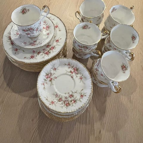 Pris for 6 trio + fløtemugge + sukker skål - 2300 kr +frakt