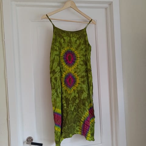 Fine batikk sommerkjoler fra Spania i gult. Pris pr stk med porto for sending. Vasket, men aldri brukt
