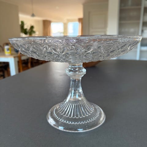 Gammelt pent stettfat i 2 etg, med gullforgyldt håndtak .Engelsk merke. Ingen sprekker el skår. Fra ca 1950-tallet