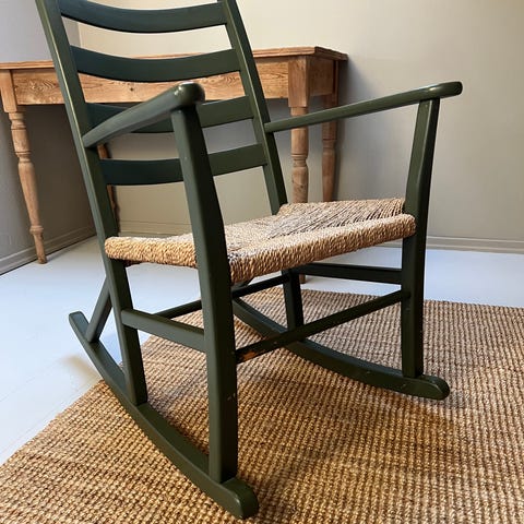 Pen og solid stol fra Normann-Copenhagen. Nydelig grønn-farge (så vidt jeg kan huske var det «Limited Edition»). Sete av hard plast, ben i heltre eik. God å sitte i. Det er et par riper i plasten på ene siden som vist på bildet, ellers strøken. Ca 6 år gammel, men lite brukt.
