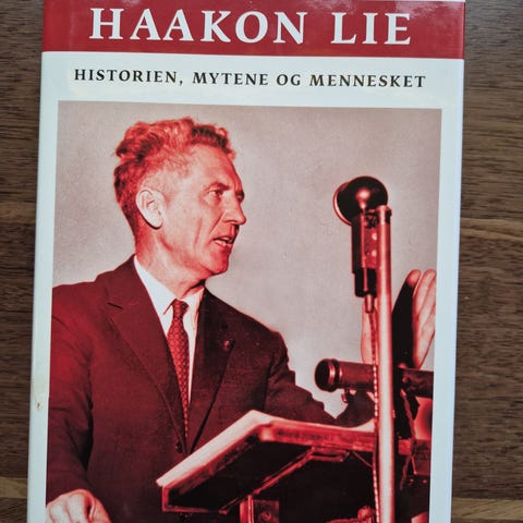 1 flott bok HAAKON LIE av av HANS OLAV LAHLUN tittelen er « historien, mytene og mennesket». Cappelen Damm 2009. Boken er meget tykk, har 848 sider. Veier 1490 gram. Høyden er 23,5 cm, bredde 16 cm. Boken er «SOM NY»! Den er innbundet og med omslag. Boken kan sendes, eller hentes her i Sandefjord, eller avtale henting i Tønsberg på Tolvsrød. Kan også sendes via Finn.no «helthjem», koster kr. 82,- inntil 5 kg!! Forsikret og med sporing!