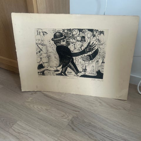 «Guernica» er et maleri fra 1937 med antikrigmotiv av den spanske kunstneren Pablo Picasso. Denne er mindre enn originalen men den er pent innrammet og i god stand.