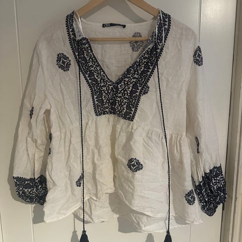 Nydelig bluse fra Star Mela,strikk i ermene, selges 200kr pluss porto.