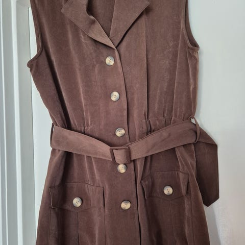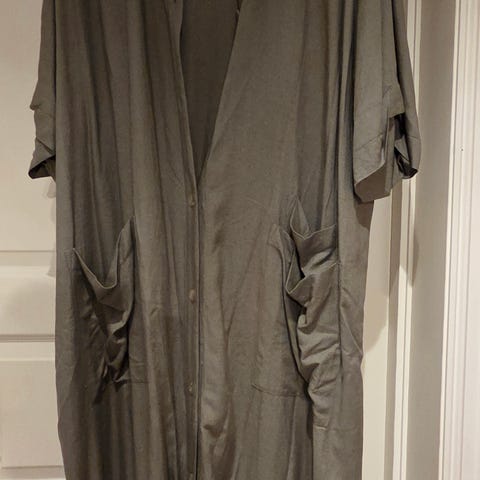 Mint and berry armygrønn kjole med gullknapper str M selges. Knyting i livet. Chifgon-aktig stoff med pent falll.