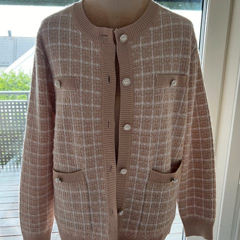 Unike ullstrikket cardigan med velurdetaljer bak på knappene
