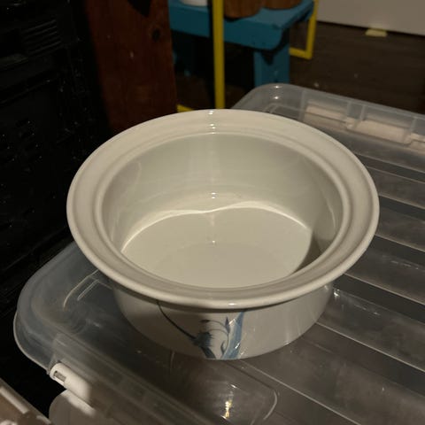 Krusene måler: H8cm, Ø9cm. De er hele og pene. Ingen krakelering, sprekker eller nagg. Litt slitasje. Ingen mønsterslitasje. Selges for kr.100 pr.stk.-SOLGT!