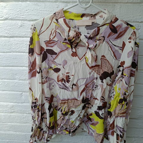 Bluse, fremstår som ny, knyting nederst. Strikk bak.