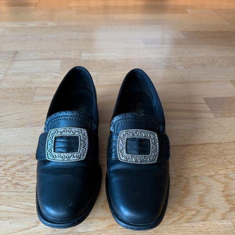 Pent brukt bunadsko selges, da de ikke passer lenger.