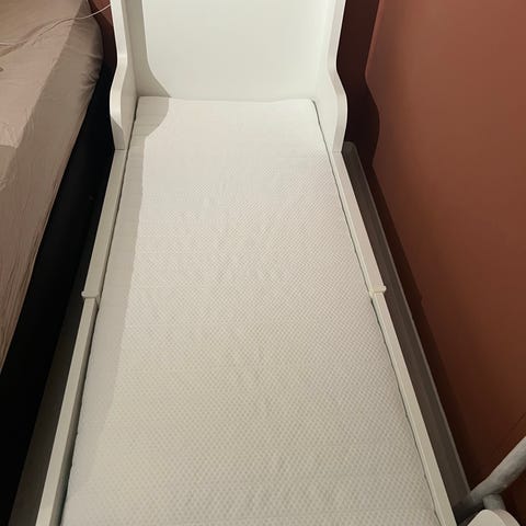 Lekent design i sterke materialer med holdbare overflater og myke avrundede hjørner. Den er også uttrekkbar så den kan vokse i takt med barnet. Ei seng laget for en liten ramp, eller BUSUNGE, som de sier i Sverige.