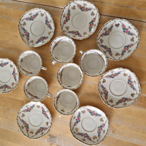 9 kopper. 13 asjetter og 13 kaffeskåler.