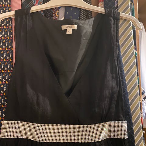 Kjempe fin selskapet kjole i størrelse 16 ( 46) . Kun brukt 2x. Kjøpt på Brudebutikk i Drammen. NP kr 5000