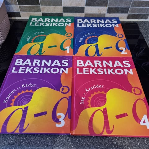 Barnas leksikon, bøkene 1-4 vintage bøker selges 700 kr. Selges kun samlet