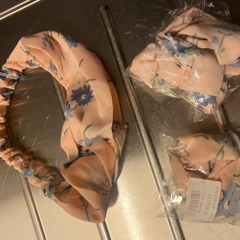 Selger en pakke med ubrukte hårbånd i forskjellig mønster. Pakken inneholder 6 hårbånd.