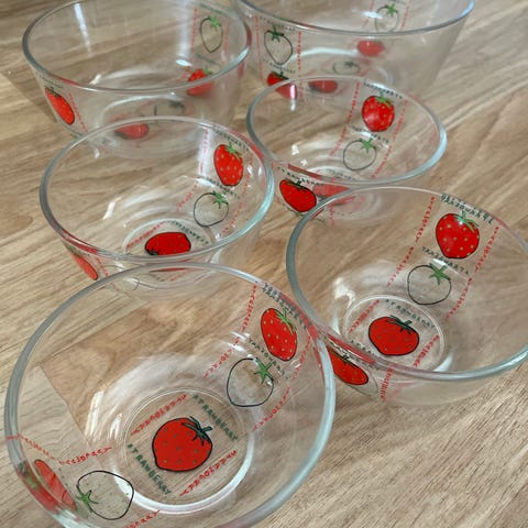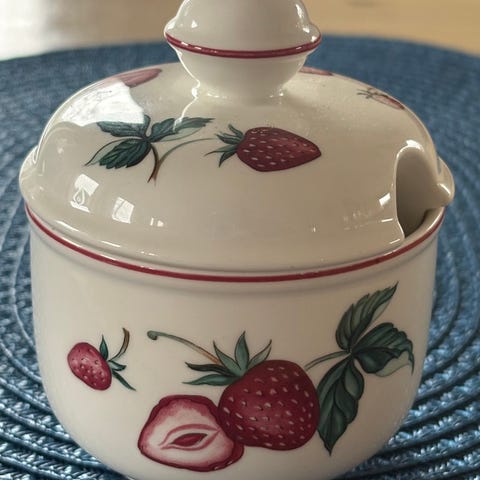 Flott jordbærsett med to skåler, fløtemugge og sukkerskål.