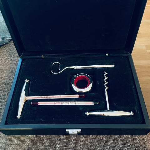 Ubrukt sett fra Hadeland Tinnstøperi i eske. Består av bordskåner til flaske, tutring og kork. Må hentes Ekeberg , sender ikke