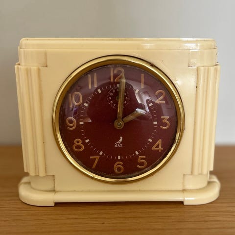 Fungerende sparebørse/bordklokke fra Sparetrygden AS. Denne er laget i bakelitt og er nok fra 40-50 tallet. Pris pluss porto. Spar porto - se også mine andre annonser.