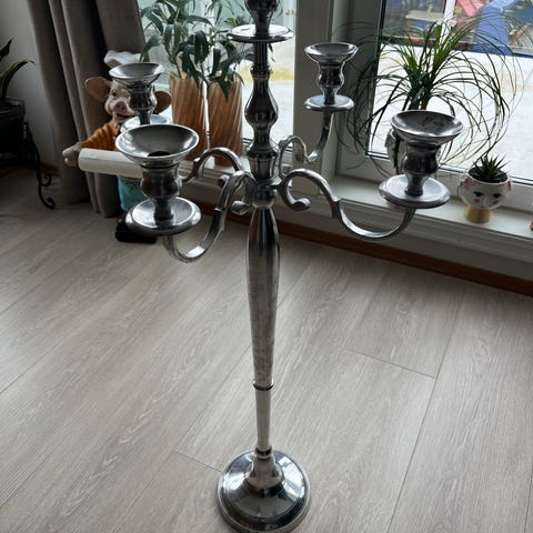 Sølvfarget lysestake firarmet. Meiner den er fra Bohus.