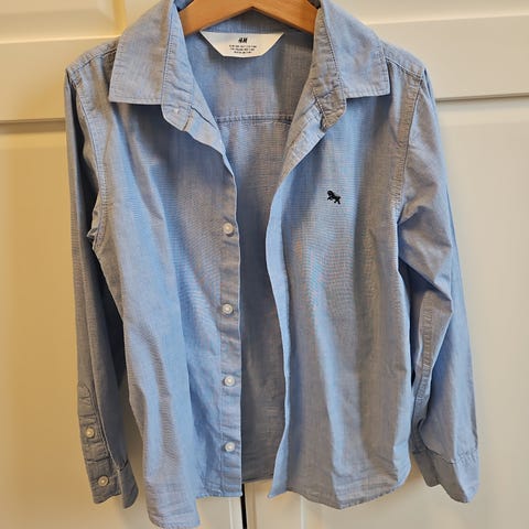 Abercrombie & Fitch skjorte for gutt i størrelse 134. Skjorten er blå med knappelukking foran og klassisk krage. Brystlomme på venstre side med liten logo. Langermet modell som passer til både hverdag og mer pyntede anledninger. Materialet er vevd stoff med normal passform for barn.