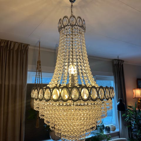Selve lampen, uten lenke og kopp. Er 110 cm høy ca og ca 50 cm bred.
