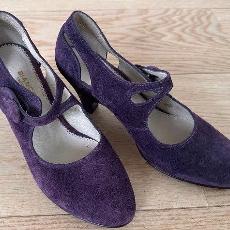Kule Fornarina-pumps i semsket lilla skinn. Stilig struktur i skinn foran og på hælen. Hælhøyde 10 cm. Kun brukt to ganger.