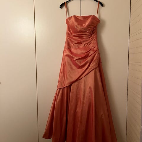 - Korsettet/brystpartiet er besatt med perler og paljetter