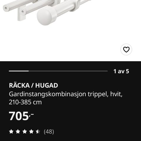 Jeg har 4 stenger, og 6 endestykket som på bildet, samt ett spyd. 3 veggfester pr. stang.