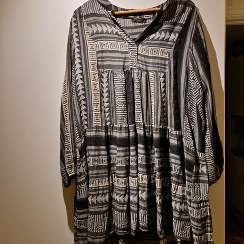 Lekker kjole med spiler i overdelen. Det følger også med bånd til å knyte rundt livet i samme stoff som kjolen. Lite brukt siden jeg sjelden er på ball. Kan sikkert brukes til andre anledninger også.
