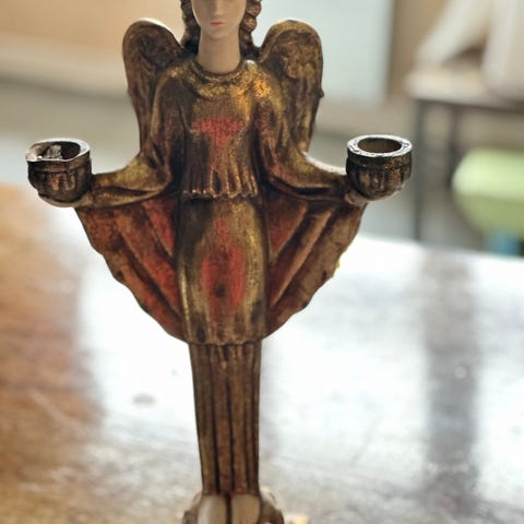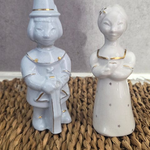 3 kunstengler i keramikk selges samlet.