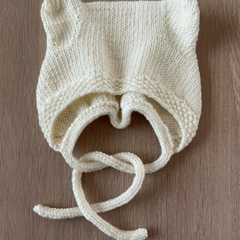 Strikker lillebjørn lue på bestilling i ønskede farger. Pris avhenger av hvilket garn du velger + 150 for arbeidet.