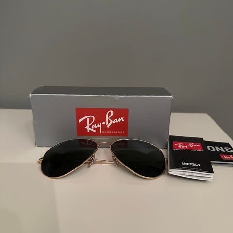 Ray Ban Aviator solbriller av ukjent årgang selges. Noen riper i glasset. Se bilder.