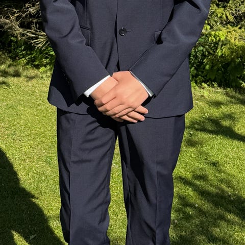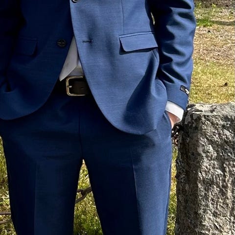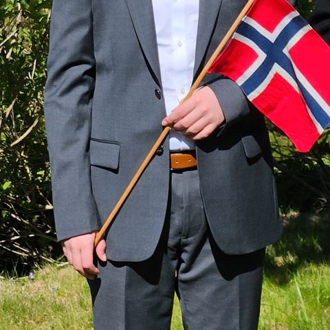 Fin blå slimfit dress med slips fra Dressmann str jakke 50 og bukse 36/32