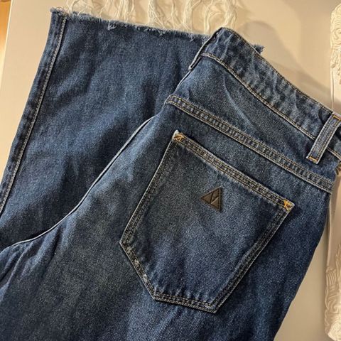 Jeans med høyt liv og rette ben fra Abrand jeans i størrelse 26, modellen heter street aline. Livvidde er 72 cm, skrittlengde 29 cm og indre benlengde 64 cm. Laget av 100% bomull. Pent brukt uten flekker eller skader.
