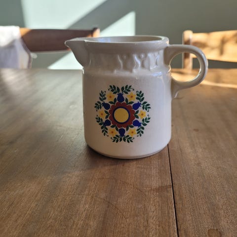 Blå og hvit mugge