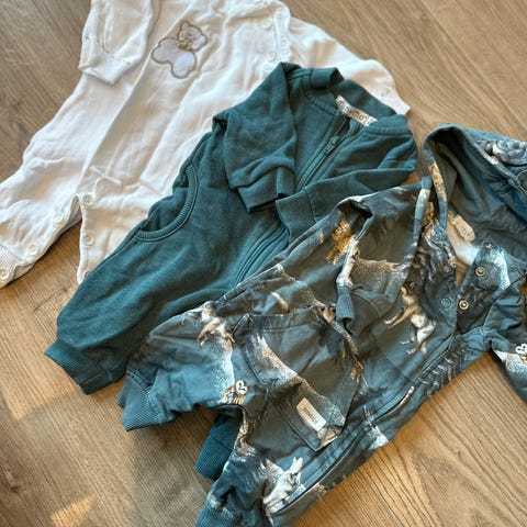 Selger flere pent brukte pysjer - kun lyseblå (nederst til høyre) igjen.