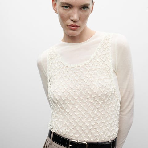 Massimo Dutti - Metallisk trådvest med broderi - Strs. S