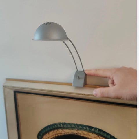 Vintage lampe til å ha over bildet eller malerier med dobbel lengde( plass til to pærer)trenger å gis nytt liv med litt lakk. Veldig dekorativ med gull ledning.